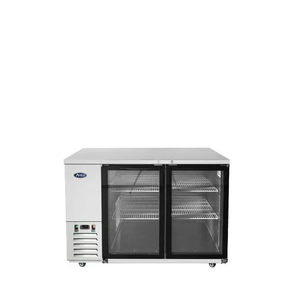 Mesa Refrigerada Back Bar con 2 puertas de vidrio de 1220x662x1020 mm (con garruchas)