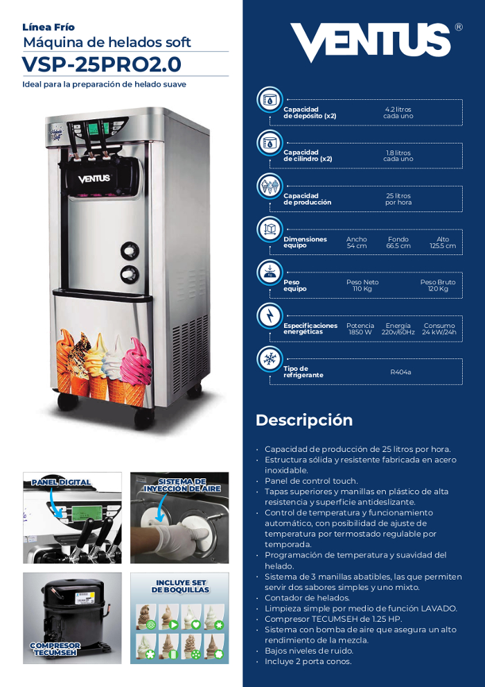 Maquina de helado soft Ventus VSP-25PRO – Helado Cremoso Profesional